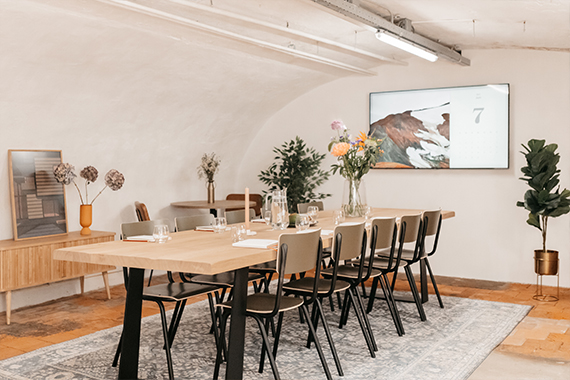De ruimte is met zorg ingericht zodat je je direct thuis voelt. Aan de 3,5 meter lange eikenhouten tafel is plaats voor 12 personen. Daarnaast is er een knusse zithoek met bank en luie stoel voor informele gesprekken of een korte pauze. Deze veelzijdige ruimte is perfect voor vergaderingen, brainstormsessies, workshops, lezingen, coachingsgesprekken, yogalessen en zelfs kleine recepties of presentaties.
